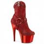 Introducing the Adore-1029CHRS Cowgirl Ankle Boot, where height meets shimmering glamour. These boots feature a striking 7-inch heel and a 2 3/4-inch platform, adorned with dazzling allover rhinestones. The chrome-plated platform bottom adds an extra layer of sophistication and edge. Designed with detachable O-ring boot straps, these boots are designed to suit any occasion. The glittering rhinestone stud ornaments further enhance their luxurious appeal. Whether you're hitting the dance floor or a special event, these blue ankle boots make a powerful style statement.