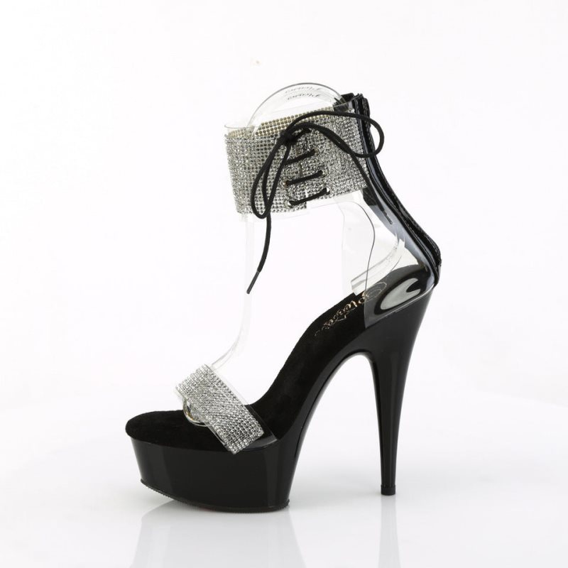 Elevate your ensemble with the Delight-627RS Sandals. These striking heels feature a 6" elevation and a 1 3/4" platform, designed to turn heads. The close-back ankle cuff showcases glittering rhinestones, complemented by intricate side lacing that adds flair. The rhinestone-encrusted toe strap sparkles with every step, and the back zip closure offers functionality without compromising style. Perfectly suited for both glamorous events and adventurous nights out, the Delight-627RS promises to add a touch of enchantment to your look.
