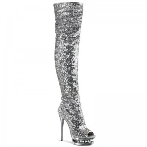Pleaser Flamingo-3021GP Glitter Overknee Stiefel Damen Rot | SXIQALFDP
