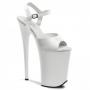 Step into the spotlight with the Infinity-909 ankle strap sandals. Featuring an impressive 9-inch heel paired with a 5 1/4-inch platform, these sandals elevate your style and stature. The sleek black finish complements any outfit, providing a striking look for any occasion. The ankle strap offers added support as you move. Embrace a bold new height in fashion with the Infinity-909.