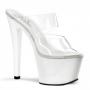 Step into the spotlight with the Sky-302 slides. Featuring a dazzling 7-inch heel complemented by a 2 3/4-inch chrome-plated platform, these slides are crafted to make a statement. The dual clear bands offer a sleek, modern look that showcases your style effortlessly. Whether you're performing or simply dressing to impress, the Sky-302 slides are a striking choice for any occasion.