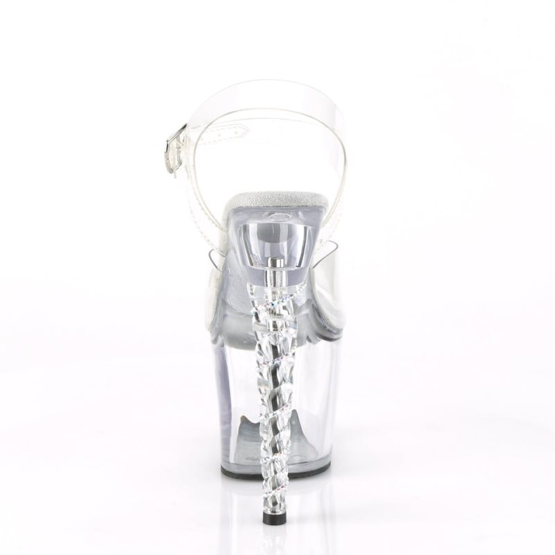 Step into a world of enchantment with the Unicorn-708RSH Ankle Strap Sandal. Featuring a mesmerizing 7-inch unicorn-shaped heel adorned with spiral AB rhinestones, this sandal is a true showstopper. The 3 1/4-inch platform offers added height, while the clear design creates a striking, ethereal look. Ideal for those looking to make a statement, these sandals blend fantasy with high fashion to turn heads wherever you go.