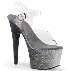Experience the dazzling allure of the Xtreme-808CHS Ankle Strap Sandals. With an 8-inch heel and a 4-inch platform, these striking sandals are crafted to attract attention. The sleek clear and silver hologram finish is enhanced by the playful contrast holographic stars on the platform underside and the front of the heel. Whether you're a performer or a fashion enthusiast, the Xtreme-808CHS lends a futuristic, eye-catching aesthetic to any look, blending height with captivating details seamlessly.